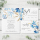 Bohoライトブルーと金ゴールド水彩花 招待状ベリーバンド