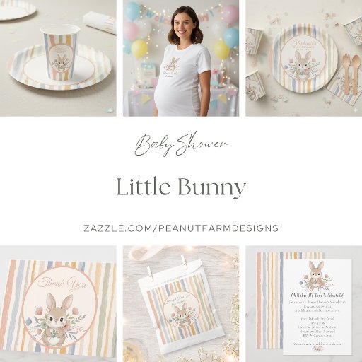 Invite loved ones to celebrate with these whimsical storybook-inspired baby shower invitations. This design features a hand-painted watercolor bunny centered among soft meadow wildflowers with a coordinated muted stripe reverse side. Perfect for a gender-neutral woodland baby shower or a sweet nature-themed celebration.