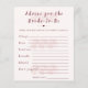 Add a meaningful and memorable touch to your celebration with this boho floral “Advice for the Bride” card. Designed with soft botanical accents and modern typography, it invites guests to share heartfelt advice, wishes, and marriage tips for the bride-to-be. Perfect for bridal showers, this elegant card becomes a keepsake the bride can treasure long after the celebration, filled with love, wisdom, and thoughtful messages from family and friends.