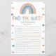 これはボーホレインボーをテーマにしたゲストの赤ちゃんシャワーゲームを見つける。*ゲストを見つける – これはアイスブレーカーゲームである。このゲームには15の質問が含まれている。各ゲストはシャワーのまわりにを行って他のゲストに会い、それぞれの質問に一致する人を見つけ、その名前を入力する。一番多い名前の人が勝つ!デザインはボーホレインボーとハート。配色は赤、ピンク、青、黄、緑。
