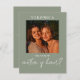 Boho Sageグリーン写真優秀提案カードのマトロン。'メイド・オブ・オーナー(花嫁付き添い人)'という語は編集できない。横向き/横向き写真をアップロードする。コレクションに一致するアイテムがあるかどうかを確認する。