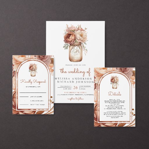Boho Terracotta Floral Mason Jar Wedding Details エンクロージャーカード