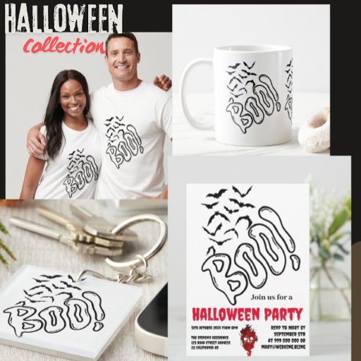 BOO不気味こうもりスウォームハロウィーンデザイン招待状 招待状