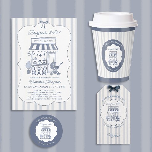 Coffee Brunch Baby Shower Theme Hand-Drawn Blueデザイン: Christine Ellis
