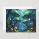ilustración de bosque de fantasía con hongos, mundo mágico, arte psicodélico, paisaje de fantasía, naturaleza mágica, arte místico, micelio, arte surrealista y luciérnagas.