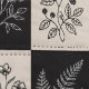Decorative throw pillow with botanical floral leather-look patchwork design. Vintage flower illustrations on stitched leather-style squares creating artisan quilt aesthetic. Black, white, and beige rustic pattern. Perfect for rustic home decor, cottage core living room, or farmhouse bedroom style.