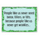 このおもしろカードは、私たちが住んでいる若者に取り憑かれた社会への私たちの答えだ。「ボトックスやフィラー、リフトなどは絶対に必要ない。私たちみたいな人はシワを取らないから」と言う。 内側には『F*ck You』というセリフが書いてある。 このおもしろカードを誰が高齢化プロセスに悩んでいるか食べ物を与え、または妊娠前の男の子の姿と永遠に22滞在しようとしていることを知っている人に送信しなさい。ちなみに、これは文字を置き換えるアスタリスク付きのクリーンアップ版である。他のバもしージョンを見たい場合は、PG-13アカウントでZazzleにサインインする必要がある。