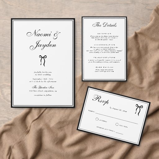 Bow Classic Old Money Black & White Photo Wedding 招待状