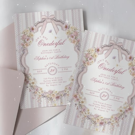 Bow Wildflower First Birthday Paper Plates ペーパープレート