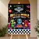 Welcome guests with this fun Out of This World birthday welcome sign featuring cute aliens, a UFO, and a playful retro space diner theme. Neon stars and a classic checkerboard floor add a colorful 1950s galaxy vibe. Personalize with your child’s name and age for a unique space birthday party welcome poster. Perfect as a printable sign for an alien, outer space, or galaxy themed kids party.