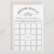 Keep guests engaged with this modern Bridal Shower Bingo game! Featuring a chic wedding ring illustration and elegant black text on white with a soft blush backing. Guests fill in the squares with predicted gifts and mark them off as the bride opens her presents—five in a row wins! A stylish and interactive way to celebrate the bride-to-be. Fully customizable.