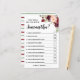 新婦マルサラのフローラブライダルシャワーゲームを知っている。文言をデザインに変更追加のカスタマイズ(フォントの色、フォントのスタイル)の場クリック合は、パーソナライズ時にスクロールダウンしクリック、「デザインツールを使用して編集」リンク上でスクロールする。**すべての一致するデザインのコレクションをチェックする** 遊 HOW TO:ゲストは花嫁に関する質問に答え、すべての質問に答えた後、花嫁は正しく推測する右のボックスと一番下の行で正しい回答の合計をチェックしま書す。最も正解の人が勝つ。