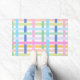 A bright and vibrant plaid house mat that features a playful mix of rainbow neon hues with a layered paint stroke style. Perfect for maximalist homes, dopamine design, and girly spaces.