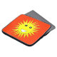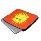 このノート素晴らしパソコンバッグは、最も悲惨な日でもスマイルを作ることが保証されている明るい笑顔の黄色い太陽を備えている。赤熱の背景にあり、大きな白いスマイリーの口と白い瞳の大きな黒い目を持つ。