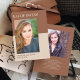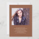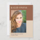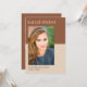 ブラウンパーソナライズされたとタン(編集可能カラー)卒業発表フォトフラットカード。写真パーソナライズされたは2枚、大学院名、学名、卒業年。背中には友人や家族へのメモと一緒に別の写真がある。このノートは、高校での卒業生の業績や将来の計画について語ることができる。卒業式の情報や卒業式への招待を含めることができる。