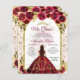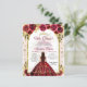 金ゴールドエレガントグリッターアーチとフローラプリンセスドレス15th誕生日キンセアニェラ招待状。