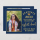 Budget Navy Blue金ゴールドスはっきりしたクリプト4 Photo Graduation Announcement Card.おめでとうの卒業生は当然の成功を収め祝て、この美しく予算の高いカードをフレンドリー使う。封筒は含まれていないことに注意して下さい。このカードの寸法は4.5インチx 5.6インチで、A6封筒4.75インチx 6.5インチに収まもしる。または、エンベロープオプションを選択する。すべての文字は、自分の詳細で簡単かつ迅速にパーソナライズするために事前に配置されている。
