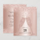 Budget Blush Pink Glitter Metallic Champagne Toast 21st Birthday Party Invitation... On a blush pink foil background with blush and rose gold glitter borders, diamond champagne glasses toast a friend or family member's 21st Birthday with the words "Here's to 21 years on planet Earth." The back of the invitation -- also with girly feminine blush and rose gold glitter -- displays all of the party details -- honoree's name, date, time and place of the party, plus RSVP information. A glamorous start for a 21st birthday. All text on front and back of this affordable invitation can be easily revised on the personalization template.