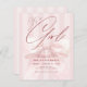 Trendy coquette pink bow it's a girl budget affordable baby shower invitation with a handwritten style calligraphy script and stylish vintage French stripes. +++++++++++ Easy to personalize with your text and details.