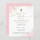 Budget Modern Gold Cross Girl Bautizo Pink Invitation