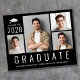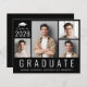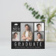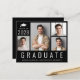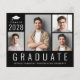 4フレンドリー写真の写真コラージュと大きな白い文字でモダン「卒業」と彼のクラスの年、名前と学校や大学の白いタイポグラフィのを特集したバジェット・ブラック卒業発表。