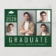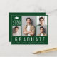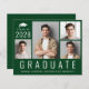 大きな白フレンドリー字でミニマル4つの写真コラージュ「卒業生」と、学年、学名、学校またはタイポグラフィのホワイトの大学を特集した予算と緑の卒業発表シンプル。