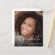 卒業生フレンドリーの業績を発表する予算オプション。このエレガント卒業発表は、白い台本にお気に入りのより「卒業生書」の写真をスタイリッシュ載せたもの。その下に、名前、学校、学年を加える。