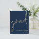 ご注意:予算の範囲内で、このサイズ(4.5 x 5.6インチ)に対して選択できる紙オプションは2つあります。この製品には、葉書と同様の厚さの110 gsmカードのストックであるセミグロスをお勧めする。Satinオプションは80gsmの非常に薄い紙である。デフォルトは半光沢に設定されている。1枚に1枚ずつ。Budget Script Navy金ゴールド院号発表このクラシックネイビーデザインの金ゴールドタイポグラフィシンプルは、スタイルのメインのヘッダ、グラード、および簡単の非公式な設定の手書きタイポグラフィスクリプトを持つ詳細と背面のメッセージ。