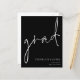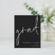 4.5インチx 5.6インチの低価格の代替品。デフォルトのオプションであるセミグロス110 lbカードストック(招待状の場合は厚い)またはサテン仕上げ80 lbシンナー紙ストック(エンクロージャの場合は理想的)で利用可能。封筒はオプションの追加カードで、カードサイズより少し大きい。クラシックブラックシンプルデザイン上のこのタイポグラフィの白い簡単は、あなたの詳細と背面にあなたのメッセージと共に右下にタイポグラフィをパーソナライズするためにメインのヘッダー、グラードおよびのための非公式の設定された手書きスタイルスクリプトを発表する。