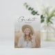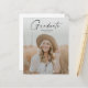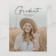 バジェットモダンスクリプト大学院写真卒業招待状。色を変更できる。背面には、追加の詳細と2番目の写真が含まれる。クリック写真と文字と共にカスタマイズ、このデザインの編集ボタン。