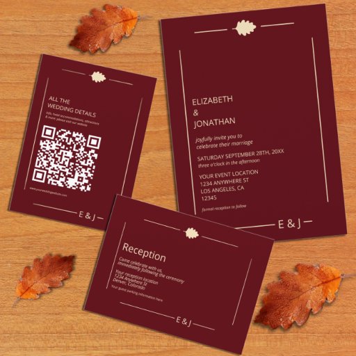 Minimalist autumn wedding with light beige brown leaf and a rich burgundy background