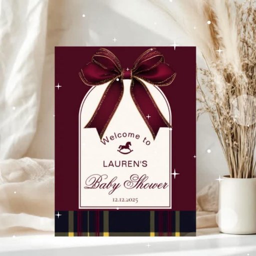 Burgundy Gold Bow Rocking Horse Luxury Paper Plates