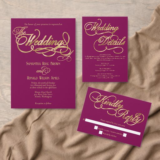 Burgundy & Gold Calligraphy Formal Wedding RSVP