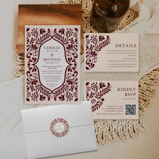 Keep your wedding mail cohesive with this burgundy Mexican wedding return address label, perfect for invitations, RSVP envelopes, and save the dates. Designed to match your suite for a polished, coordinated look.