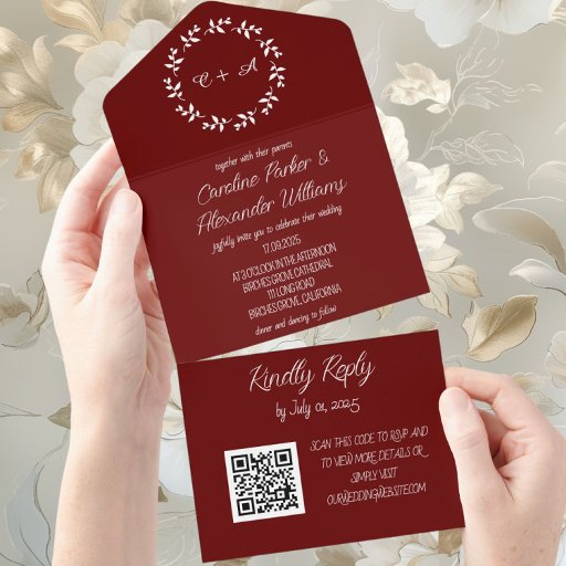 Burgundy, botanical, initials, rustic, minimalist favor bag. Perfect for Weddings, birthdays, parties.
