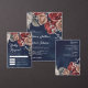 Burgundy Red Floral QR Code RSVP Navy Blue Wedding エンクロージャーカード