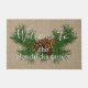 素朴な松のコーンと針の装飾が背景を見るジュートなリネンの布に美しいトープのバーラップスタイルの織物の外観。あなたの選択のカスタマイズ家族の名前でパーソナライズする部屋で。外華美部デザイエレガントザスタイリッシュー、ヴィンテージ書またはアンティークタイポグラフィのスタイル愛好家のための芸術的デザイン。トレンディーホームモダンデコールアクセントあなたの国のコテージ、ログキャビン、湖や川のバケーションホームの屋外の入り口またはポーチ。