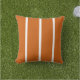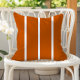 Stylish outdoor pillow in burnt orange with three thin white stripes.