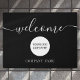 ビジエレガントパーソナライズされたネスのロゴと名前の文字は、クラシックの白い文字で設定した会社名を黒い背景に、白いスクリプトので設定した「welcome」というメッセージをエレガント含む。詳細と色カスタマイズを好みの色に合わせてパーソナライズ。Thisisnomeによる設計©