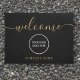 ビジネスエレガントのロゴと名前の文字パーソナライズされたは、クラシックの金ゴールド文字に設定された会社名を黒い背景に金ゴールドスクリプトのに設定された「welcome」というメッセージを付けエレガントて表示する。詳細と色カスタマイズを好みの色に合わせてパーソナライズ。Thisisnomeによる設計©