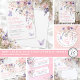 On the right, your name appears in a classy, elegant script font in pink, while the address is printed below in a classic serif style for a clean, timeless feel. The colors include soft blush pinks, dusty rose, lilac, lavender, violet, and fresh greens for a light and dreamy vibe.