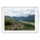 湖地区の国立公園のButtermere、Cumbria、イギリスを見落とす山頂上石造りのケルン。 イギリスの景色及び自然のコレクション。