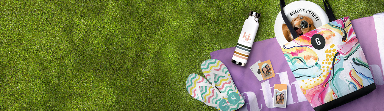 テンプレートに画像やテキストを挿入するだけで、初心者でも簡単にデザイン可能。バッグ全体に印刷するタイプや、名前入りのシンプルデザインも選べます。