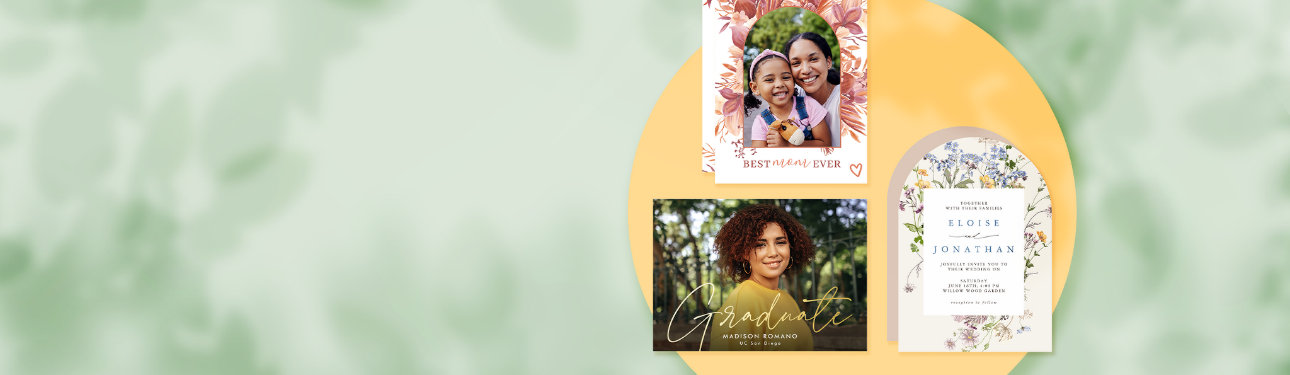 - イベントタイプ: 結婚招待状、婚約パーティー、結婚記念日から 誕生パーティー案内状、卒業パーティーや同窓会、退職や還暦お祝い、BBQパーティー、ティーパーティーや 飲食店関連案内状など、あらゆるイベントをカバーします。さらには出産報告や転居案内まで!