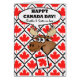 A funny moose breaks through a wall of maple leaf tiles on the cover of this Canada Day greeting card. Happy Canada Day! Brother and Sister-in-Law, text on the cover. Bold contemporary design in red, white, black, and browns.
