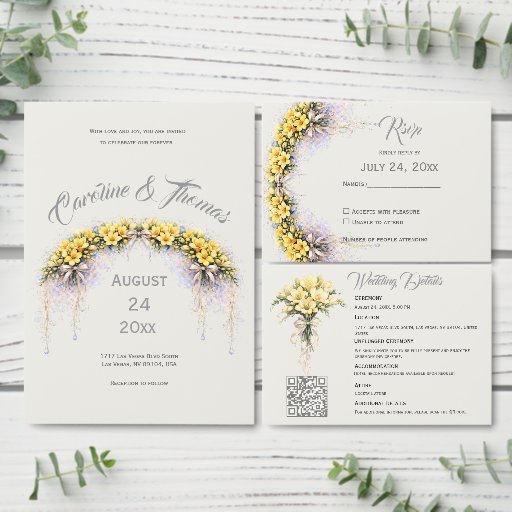 Canary Yellow Romantic Freesia Floral Wedding 招待状ベリーバンド