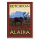Caribou Scene - Ketchikan, Alaska - Vintage Travel Posterが2007年に制作された。この画像はケチカンAKの風景を描いている。
