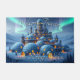 Welcome doormat of an impressive castle made of igloos and stone, in a winter landscape of snow and pine trees. Magical aurora lights play in the evenfall sky, bathing the mountains and valley in a surreal atmosphere of heavenly colors. Amidst the misty strands of cold and snow, the stronghold castle known as "Winter Fire" stands. It is the last bastion of civilization and warmth before a vast expanse of frozen tundras, snowcapped mountains, and haunted forests open themselves to the wanderlust of the willing traveler... This artwork was created with ImageFX and upscaled with Leonardo.ai. Additional editing was done offline by me.
