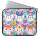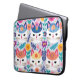 A Cute Laptop Sleeve For Traveling Designed With Colorful Cat Faces Wearing Hats And Flower Pattern For Her