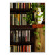 オリエンタルの花瓶と緑のつる植物の横にコンパクトディスクの4つの棚のカラフル構成を備えている。花瓶の優雅な曲線とcdsコントラストの垂直線は、興味深い抽象デザインを型枠する。